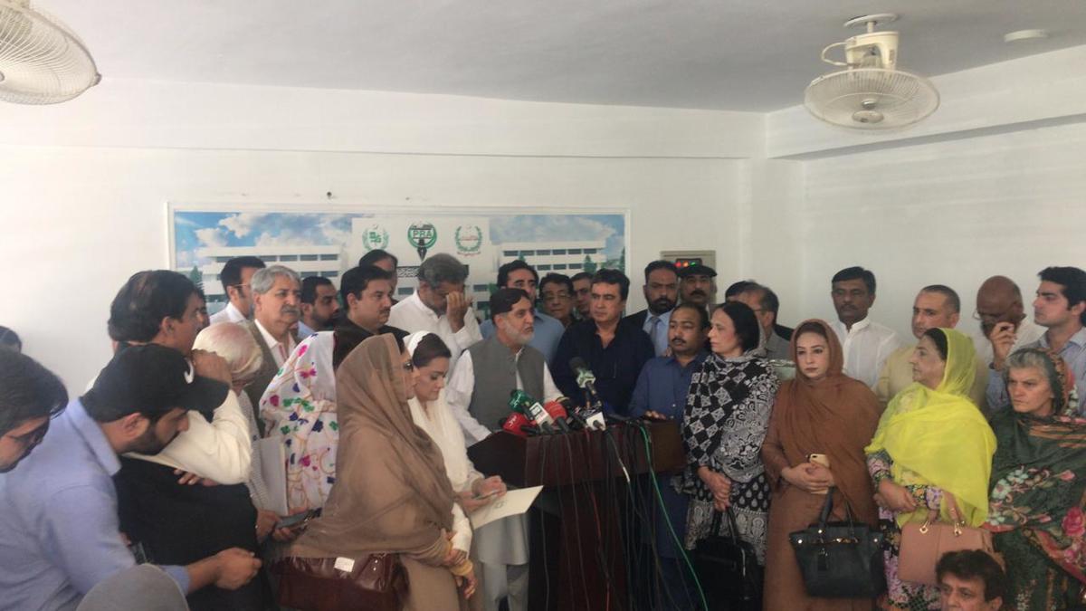 قومی اسمبلی میں موقع نہ ملنے پر مشترکہ اپوزیشن نے پارلیمنٹ ہاوس کے باہر پریس کانفرنس میں ججز کے خلاف ریفرنس کو حکومتی سازش قرار دیا۔