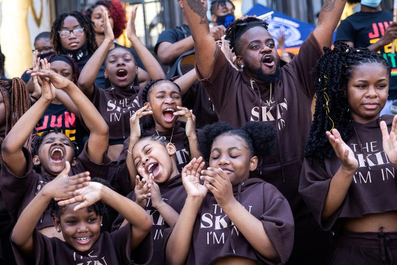 غلامی کے خاتمے کی یاد: امریکہ میں سیاہ فام شہریوں کا مارچ اور رقص