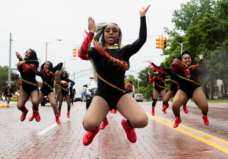 سترہ سالہ ڈانسر شیئر مئی ہیرس امریکی ریاست مشی گن کے شہر فلنٹ میں پریڈ کے دوران اپنے فن کا مظاہرہ کر رہی ہیں۔