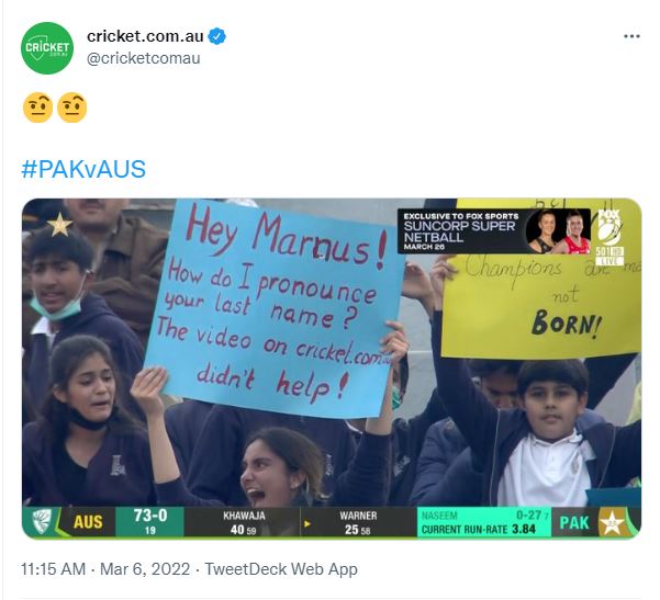 Mr. Labuschagne is back in South Africa - but that doesn't mean he'll change how he pronounces his surname! #SAvAUS pic.twitter.com/jDC44u6N3P