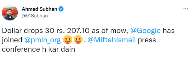 According to sources Shehbaz Shareef paid $100M to Google to show dollar rate at 207.10