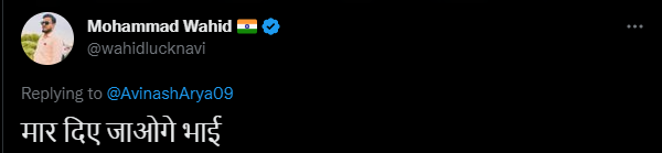 خود کو سپورٹس جرنلسٹ کے طور پر متعارف کرانے والے انڈین ٹویپ نے اویناش آریان کے خدشے کو درست مانا تو ہندی میں کی گئی ٹویٹ میں سنگین انجام کی نشاندہی کی۔
