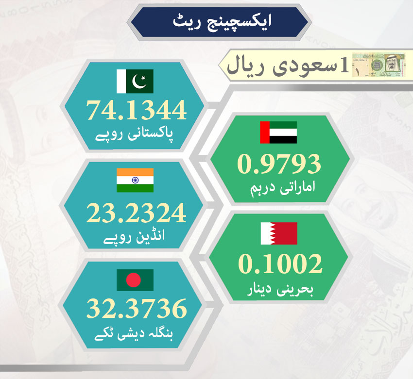 سعودی عرب کے مختلف ٹرانزیکشن سنٹرز کے مطابق جمعرات 06 مارچ 2025 کو سعودی ریال کا ایکسچینج ریٹ ذیل میں درج کیا گیا ہے۔