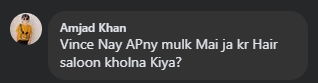 ایک اور صارف نے فیس بک پر کمنٹ کیا کہ ’ونس اپنے ملک جا کر ہئیر سیلون کھولیں گے۔‘