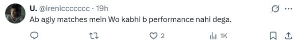 ایک اور صارف نے لکھا ’اب وہ اگلے میچ میں کبھی پرفارمنس نہیں دیں گے۔‘