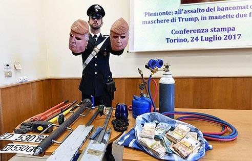 روم۔۔۔اٹلی کی پولیس نے 2بھائیوں کو گرفتار کیا ہے جنہوں نے اے ٹی ایم سے نقدی لوٹیں۔ انہوں نے اٹلی کے شہر تورین میں کئی مشینوں کو نشانہ بنایا ۔ ان کا طریقہ واردات یہ تھاکہ وہ امریکی صدر ڈونلڈ ٹرمپ کے ماسک پہن کر وارداتیں کرتے تھے۔ شاید انہوں نے 1991ء میں ریلیز ہونیوالی فلم ’’پوائنٹ بریک‘‘دیکھ رکھی تھی جس میں ایک گروہ بینک لوٹتے ہوئے سابق امریکی صدور کے ماسک پہنا کرتا تھا۔ لیکن پولیس نے بتایاکہ ان دونوں نے 1997ء میں بننے والی فلم ’’دی جیکال ‘‘دیکھی تھی۔جس میں یہ سب کچھ ہوتا تھا۔