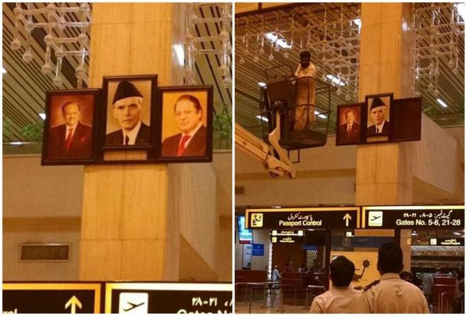 اسلام آباد ...نوازشریف کی تصاویرکراچی اور اسلام آباد ایئرپورٹ سے ہٹا دی گئیں۔کراچی کے جناح ٹرمینل پر قائد اعظم اور صدر ممنون کے ساتھ آویزاں وزیراعظم کی تصویر والا فریم اب بغیر تصویر کے اپنی جگہ پر لگا ہوا ہے۔جناح انٹرنیشنل ائر پورٹ سے تصاویر ہٹائے جانے کی وڈیو سوشل میڈیا پر بھی وائرل ہے۔ دریں اثناء قومی اسمبلی کی ویب سائٹ سے بطور رکن اسمبلی ہٹا دیا گیا۔