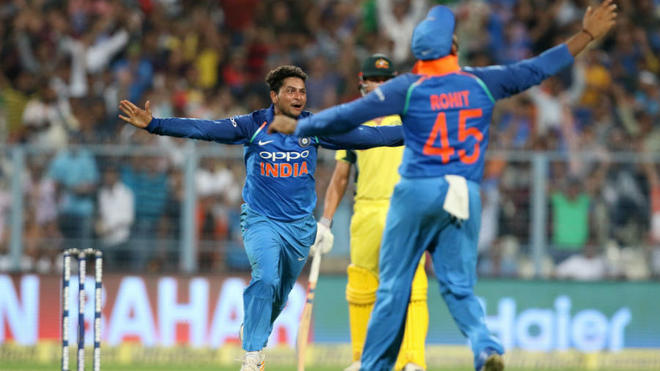 کولکتہ:ہنداور آسٹریلیا کے درمیان 5ون ڈے میچوں کی سیریز کے دوسرے میچ میں ہندنے بولرز کی عمدہ کارکردگی اور کلدیپ یادو کی ہیٹ ٹرک کی بدولت 50رنز سے فتح سمیٹ کر 0-2کی برتری حاصل کرلی۔ہند نے 252رنز بنائے۔ مہمان ٹیم چھٹے نمبر پر بیٹنگ کرنے والے مارک اسٹوئنز کی سخت مزاحمت کے باوجود202رنز پر آوٹ ہو گئی۔ اسٹوئنزآخر تک ڈٹے رہے لیکن کوئی اور بیٹسمین ان کا ساتھ نہیں دے سکا ۔ وہ 62رنز پر ناٹ آوٹ رہے، 92رنز کی اننگز کھیلنے والے ہندوستانی کپتان ویرات کوہلی کو میچ کا بہترین کھلاڑی قرار دیا گیا۔ ہندوستانی کپتان ویرات کوہلی نے ٹاس جیت کر پہلے خود بیٹنگ کا فیصلہ کیا۔آسٹریلوی بولرز کی بہتر کارکردگی سے ہندوستانی ٹیم زیادہ بڑا ہدف نہیں دے پائی۔ ہند کی پہلی وکٹ 19 رنزر پر گری جب روہت شرما 7رنز بنا کر ناتھن کولٹر نائل کی گیند پر انہی کے ہاتھوں کیچ ہو گئے۔ اجنکیا رہانے اور کپتان ویرات کوہلی کے درمیان دوسری وکٹ کی شراکت میں 102رنز کا اضافہ ہوااور 121رنز پر دوسری وکٹ گری جب رہانے نصف سنچری مکمل کرنے کے بعد 55 پر رن آوٹ ہو گئے۔ان کے بعد آنے والے منیش پانڈے صرف3رنز بنا سکے تاہم کیدار جادھو نے کچھ دیر کوہلی کا ساتھ دیا اور24رنز بنائے۔ ان کے بعد کپتان کوہلی 92رنز پر بولڈ ہو گئے۔ انہوں نے 107گیندیں کھیلیں اور8چوکے لگائے۔سابق کپتان مہند ر سنگھ دھونی5رنز پر کیچ ہو گئے۔ ہردک پانڈیا اور بھنیشور کمار نے کچھ مزاحمت اور 20-20رنز بنانے میں کامیاب رہے۔ جسپریت بمرا 10رنز پر ناٹ آوٹ رہے۔ناتھن کولٹر نائل اور کین رچرڈ سن نے 3-3وکٹیں لیں۔ہندوستانی بولرز نے نسبتاًچھوٹے ہدف کا کامیابی سے دفاع کرتے ہوئے آسٹریلیا کو202رنز تک محدود رکھا۔مہمان ٹیم کی بیٹنگ لائن ناکامی کا شکار رہی ۔ کپتان اسٹیون اسمتھ، چھٹے نمبر پر بیٹنگ کرنے والے مارکس اسٹوئنز اورٹریوس ہیڈ کے سوا کوئی بیٹسمین وکٹ پر زیادہ قیام نہ کرسکا۔ اسمتھ نے 59، اسٹوئنز نے ناقابل شکست 62اور ٹریوس نے39رنزاسکور کئے ۔ آسٹریلیا کے 7بیٹسمینوں کو ڈبل فگر میں پہنچنے کا موقع نہ مل سکا۔ کلدیپ یادو کی ہیٹ ٹرک کی بدولت آخری5وکٹیں اسکور میں صرف10 رنز کا اضافہ کرسکیں اور پوری ٹیم 44ویں اوور میں 202رنز پر آوٹ ہو گئی۔کلدیپ یادو اور بھونیشور کمار نے 3-3جبکہ ہردک پانڈیا اور یزویندر چاہل نے2-2وکٹیں لیں۔