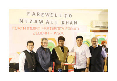 جدہ ( امین انصاری ) نارتھ انڈین فریٹرنیٹی فورم جدہ کے زیر اہتمام مشہور غزل سنگر استاذ نظام علی خان کی الوداعیہ تقریب منعقد کی گئی ۔ تقریب میں ہندوستان کی بیشتر ریاستوں کے سربراہان نے شرکت کی ۔ فورم کے جنرل سیکریٹری خواجہ ناصر جمال نے مہمانوں اور شرکاءکا خیر مقدم کرتے ہوئے نارتھ انڈین فریٹرنیٹی فورم جدہ کی کارکردگی بتاتے ہوئے کہا کہ فورم کمیونٹی سروسزبلا تفریق انجام دیتی ہے ۔ فورم کی جانب سے تعلیمی کفالت دی جاتی ہے ، قونصلیٹ کی رہنمائی پرپریشان حال لیبرز کی معاشی اور مالی مدد کرکے انکے وطن واپسی کے انتظامات کئے جاتے ہیں،لاوارث نعشوں کی وطن واپسی کے انتظامات ، قیدیوں کی رہائی اورمیڈیکل کی سہولت سے محروم افراد کی ہر ممکن مدد کی جاتی ہے ۔ اس کے علاوہ ملک و قوم کی نامور شخصیات کی پذیرائی بھی فورم کے تحت کی جاتی ہے ۔آج کی تقریب اسی کا ایک حصہ ہے ۔