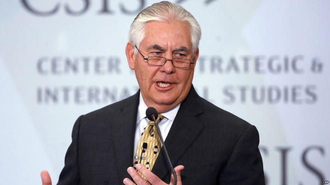 واشنگٹن …  امریکہ کے وزیرخارجہ ریکس ٹلر سن نے روہنگیا  پناہ گزینوں کے حالیہ بحران کیلئے میانمار کی فوجی قیادت کو ذمہ دار قرار دیا ہے۔ واشنگٹن میں سنیٹر فار ا سٹراٹیجک اینڈ انٹرنیشنل اسٹڈیز میں تھنک ٹینک سے خطاب کرتے ہوئے انہوں نے کہا کہ حقیقت میں راکھین کے علاقے میں جو کچھ ہورہا ہے اس کی ذمہ دار میانمار کی فوجی قیادت ہے ۔دریں اثناء یورپی یونین اور امریکہ میانمار کی فوجی قیادت کے خلاف مخصوص پابندیاں لگانے پر غور کررہے ہیں۔