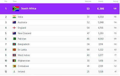 سیریز میں کلین سویپ سے پاکستان ٹیم کو4پوائنٹس ملے