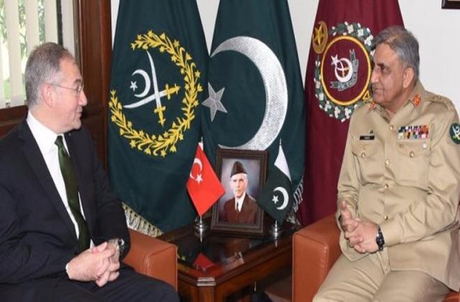 راولپنڈی...آرمی چیف جنرل قمر جاوید باجوہ سے جمعہ کو ترک سفیر صادق بابر گرگن نے الوداعی ملاقات کی۔ آئی ایس پی آر کے مطابق علاقائی سیکیورٹی اور باہمی دلچسپی کے امور پر تبادلہ خیال کیا گیا۔ پاکستان اور ترکی کے تعلقات کو مزید وسعت دینے پر بھی اتفاق کیا گیا ۔آرمی چیف نے سبکدوش ترک سفیر کی پاکستان میں خدمات کو سراہا۔