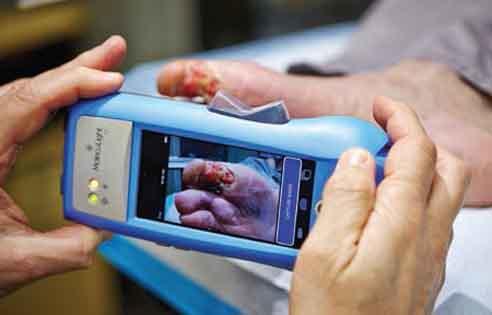 اوٹاوہ - - - - گہرے ناسور خصوصاً ذیابیطس کے مریضوں کے زخموں کو مندمل کرنےکیلئے پہلے اس کا انفیکشن دور کرنا ضروری ہوتا ہے لیکن اس کے روایتی ٹیسٹ بہت وقت لیتے ہیں تاہم اب ماہرین نے ایسا دستی آلہ بنایا ہے جو ہاتھوں ہاتھ زخموں پر بیکٹیریا، وائرس اور انفیکشن کو آشکار کرکے ماہرین کو خبردار کردیتا ہے۔’’مالکیولائٹ آئی ایکس‘‘ نامی اس آلے میں انفیکشن چمک دار روشنی (فلوریسنٹ لائٹ) میں دکھائی دیتا ہے مثلاً اگر کسی مریض کے زخم کے کنارے سرخ ہوں تو وہ ایسے بیکٹیریا کو ظاہر کرتے ہیں جن پر کسی جلد کا پیوند کارآمد ثابت نہیں ہوگا اور زخم مزید خراب ہوجائے گا۔ یہ معلومات ڈاکٹروں کیلئے انتہائی مفید ہیں جو مریض کیلیے بروقت اور درست فیصلے میں مدد دیتی ہیں۔مالیکولائٹ آئی ایکس کی پہلی خوبی یہ ہے یہ زخم کی درست ترین پیمائش فراہم کرتا ہے اور ساتھ ہی گہرائی بھی بتاتا ہے، جلد کی پرتوں اور جراثیم سے خارج ہونے والی خاص قسم کی روشنی کی ویولینتھ (طول موج) سے مختلف جراثیم اور زخم کے حصوں کے درمیان امتیاز کیا جاسکتا ہے۔ اگر آپ کو شک ہے کہ اسپتال کا بستر یا جراحی کا کوئی آلہ جراثیم سے آلودہ ہے تو یہ آلہ اس کی بھی خبر دے سکتا ہے۔کینیڈا میں واقع جوڈی ڈین ریسرچ اینڈ ٹریٹمنٹ سینٹر کے ڈاکٹروں نے ایک مریض کے بہت دیر سے ٹھیک نہ ہونے والے ناسور کا اس آلے کے ذریعے 8 ہفتے تک علاج کیا تو مریض کو بہت افاقہ ہوا۔یہ آلہ اندھیرے میں بہتر کام کرتا ہے کیونکہ کمرے کی روشنی اس کے نتائج پر اثرانداز ہوتی ہے۔ اس سے لی گئی تصاویر ایک خاص کیبل کے ذریعے کسی بھی کمپیوٹر یا لیپ ٹاپ پر منتقل کی جاسکتی ہیں۔