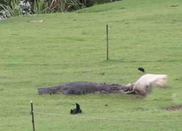 سڈنی .... مغربی آسٹریلیا کے شہر کونانارا میں ایک مگر مچھ دریا سے نکل کر ایک نجی فارم میں پہنچ گیا اور وہاں مری ہوئی گائے کھانے لگا ۔ جب فارم کے مالک وہاں پہنچے تو دیکھ کر حیران رہ گئے۔ انہوں نے فوری طور پر وڈیو بنالی۔ یہ مگر مچھ 4میٹر طویل تھا۔ خاتون خانہ کا کہناتھا کہ اس نے ایسا منظر کبھی نہیں دیکھا تھا۔ ہم مگر مچھ سے خوفزدہ رہتے ہیں اور اسی لئے دریا تک نہیں جاتے۔ انہوں نے کہاکہ قریب ہی واقع ایک جگہ پر مگر مچھ نے چند ماہ قبل ہی ایک گھوڑے کو بھی ہلاک کردیا تھا۔ انکے شوہر کا کہناتھا کہ یہ گائے دو دن سے وہاں مردہ حالت میں پڑی تھی۔ یہ واقعہ ہمارے بچوں کیلئے بھی بڑا اچھا سبق ہے کہ وہ ایسی جگہ مت جائیں جہاں مگر مچھ آسکتا ہو۔