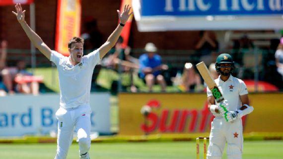 پورٹ ایلزبتھ:جنوبی افریقہ اور زمبابوے کے درمیان انٹرنیشنل کرکٹ کونسل کی اجازت سے آزمائشی بنیادوں پر کھیلا جانے والا 4روزہ ڈے نائٹ ٹیسٹ میچ صرف2روز میں اختتام کو پہنچ گیا اور زمبابوے کی ٹیم کو ایک اور بڑی شکست سے دوچار ہونا پڑا۔ جنوبی افریقی بولرز نے کھیل کے دوسرے دن 16وکٹیں حاصل کرتے ہوئے ٹیم کو اننگز اور 120رنز سے فتح دلادی۔کیشو مہاراج نے5 وکٹیں لیں جبکہ جنوبی افریقہ کی جانب سے ان کی واحد اننگز میں سنچری اسکور کرنے والے ایڈن مارکرام کو مین آف دی میچ قرار دیا گیا۔اپنی نوعیت کے اس پہلے ٹیسٹ میچ میں زمبابوے کی بیٹنگ بری طرح ناکامی کا شکار رہی۔ جنوی افریقہ کے 309/9رنز پر اننگز ڈیکلیئر کے بعد مہمان ٹیم پہلی اننگز میں صرف68رنز پر آوٹ ہو کر فالو آن کا شکار ہوئی اور دوسری اننگز میں بھی 121رنز ہی بنا سکی ۔ پہلی اننگز میں مورنی مورکل نے 21جبکہ دوسری اننگز میں کیشو مہاراج نے59رنز دے کر5وکٹیں لیں۔کھیل کے پہلے دن ہی 30رنز پر زمبابوے کے 4کھلاڑی واپس لوٹ چکے تھے جبکہ دوسرے دن بقیہ 6 وکٹیں بھی اسکور میں صرف 38رنز کا اضافے کر سکیں۔ فالو آن کے بعد جب زمبابوے نے دوبارہ بیٹنگ شروع کی تو کم و بیش وہی کہانی دہرائی گئی تاہم اس مرتبہ اسکور میں پہلی اننگز کی نسبت 53رنز زیادہ بنے لیکن بیٹسمین ٹیم کو اننگز کی شکست سے بچانے میں کامیاب نہ ہو سکے اور پوری ٹیم121رنز پر پویلین لوٹ گئی اور ایک دن میں زمبابوے کی16وکٹیں گریں۔زمبابوے کی پہلی اننگز میں کائل جاروس جبکہ دوسری اننگز میں کریگ ارون23،23رنز بنا کر ٹاپ اسکورر رہے ۔ڈے/ نائٹ ٹیسٹ کے دوسرے دن کھیل اتنی جلدی ختم ہوا کہ اسٹیڈیم کی لائٹس آن کرنے کی ضرورت بھی نہیں پڑی۔جنوبی افریقہ کے اوپنر ایڈن میکرام کو125رنز کی عمدہ اننگز کھیلنے پر بہترین کھلاڑی کا اعزاز دیا گیا۔