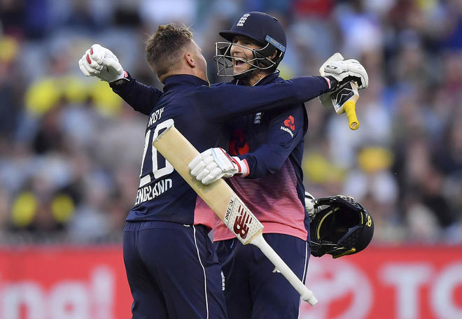 میلبورن : جیسن روئے کی ریکارڈ ساز 180 رنزکی اننگز کی بدولت انگلینڈ نے عالمی چیمپیئن آسٹریلیا کو پہلے ایک روزہ بین الاقوامی کرکٹ میچ میں 5 وکٹوں سے شکست دے کر 5 میچوں کی سیریز میں 0-1 کی برتری حاصل کر لی۔میزبان ٹیم نے پہلے کھیلتے ہوئے مقررہ50 اوورز میں 8 وکٹوں کے نقصان پر 304 رنز بنائے۔ جواب میں انگلش ٹیم نے مطلوبہ ہدف 48.5 اوورز میں 5 وکٹوں پر حاصل کرلیا۔ جیسن روئے اور جوائے روٹ نے بولرز کا ڈٹ کر مقابلہ کیا۔ دونوں بلے بازوں نے 221 رنز کی شراکت قائم کرکی۔ جیسن روئے نے غیرمعمولی بیٹنگ کا مظاہرہ کرتے ہوئے 180 رنز کی دلکش اننگز کھیلی۔ اس کے ساتھ ہی وہ اپنے ملک کی طرف سے انفرادی طور پر بڑی ون ڈے اننگز کھیلنے والے بیٹسمین بھی بن گئے۔ جوائے روٹ نے بھی ان کا بھرپور ساتھ دیا اور 91 رنز بنا کر ناٹ آوٹ رہے۔ آسٹریلوی اوپنر ایرون فنچ کی سنچری کے علاوہ اسٹوئنس اور مچل مارش کی نصف سنچریاں بھی رائیگاں گئیں۔ جیسن روئے کو عمدہ بیٹنگ کا مظاہرہ کرنے پر میچ کے بہترین کھلاڑی کا ایوارڈ دیا گیا۔ میلبورن میں کھیلے گئے سیریز کے پہلے ایک روزہ میچ میں انگلش ٹیم کے کپتان این مورگن نے ٹاس جیت کر پہلے فیلڈنگ کا فیصلہ کیا۔ آسٹریلیانے 8 وکٹوں پر 304 رنز بنائے۔ فنچ نے 107 رنز کی عمدہ اننگز کھیلی۔ ا سٹوئنس نے بھی جارحانہ بیٹنگ کی اور 60 رنز بنا کر دوسرے نمایاں بلے باز رہے۔ مچل مارش 50 رنز بنا کر آوٹ ہوئے جبکہ ڈیوڈ وارنر 2، ٹریوس ہیڈ 5، کپتان ا سٹیون ا سمتھ 23، ٹم پین 27 پیٹ کمنز 12 رنز بناسکے۔ اینڈریو ٹائی 4 رنز کے ساتھ ناٹ آوٹ رہے۔ لیام پلنکٹ نے 3 ، عادل رشید نے 2، کرس ووکس، مارک ووڈ اور معین علی نے ایک، ایک وکٹ لی۔ جواب میں انگلش ٹیم نے مطلوبہ ہدف 49ویں اوور کی پانچویں گیند پر 5 وکٹوں کے نقصان پر حاصل کرلیا۔ جیسن روئے اور جونی بیئر سٹو نے 53 رنز کا آغاز دیا۔ بیئرسٹو 14 رنز بنا کر ا سٹارک کی گیند کا نشانہ بنے۔ ایلکس ہیلز بیٹنگ کا جادو جگانے میں ناکام رہے اور صرف 4 رنز بنا کر چلتے بنے۔60 کے مجموعی ا سکور پر 2 وکٹیں گرنے کے بعد جوائے روٹ نے جیسن روئے کا ساتھ دیا۔ دونوں بلے بازوں نے انتہائی شاندار اور ذمہ دارانہ بلے بازی کا مظاہرہ کرتے ہوئے تیسری وکٹ میں 221 رنز کی اہم اور فاتح گر شراکت قائم کی۔ بدقسمتی سے جیسن ڈبل سنچری مکمل نہیں کرسکے اور 281 رنز کی مجموعی اسکور پر 180 رنز کی دلکش اننگز کھیلنے کے بعد ا سٹارک کی گیند پر کیچ آوٹ ہو گئے۔کپتان این مورگن ذمہ داری کا مظاہرہ نہ کر سکے اور صرف ایک رن بنا کر کمنز کی گیند کا نشانہ بنے۔جوز بٹلر 4 رنز بنا کر چلتے بنے لیکن جوائے روٹ ایک اینڈ پر ڈٹے رہے اور 91 رنز بنا کر ناٹ آوٹ رہے۔معین علی نے5 رنز بنائے اور آوٹ نہیں ہوئے۔ مچل ا سٹارک اور پیٹ کمنز نے 2 ، 2 اور ا سٹوئنس نے ایک وکٹ لی۔