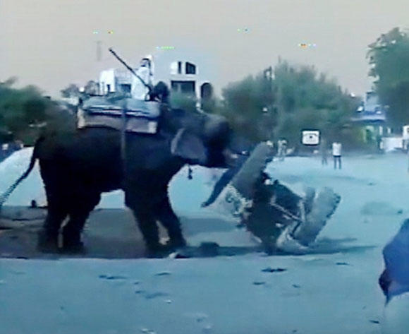 نئی دہلی ..... یوپی کے شہر حمیر پور سے لایا جانیوالا ایک ہاتھی اینٹی ریبیز انجکشن لگنے کے بعد پاگل ہوگیا او راس نے راہ میں آنے والی ہر چیز پر حملہ کرنا شروع کردیا یہاں تک کہ ایک ٹریکٹر کو بھی ہوا میں ا چھال دیا۔ اس ہاتھی کو ایک آوارہ پاگل کتے نے کاٹ لیا تھا۔ اسکا مہاوت علاج کیلئے اسے جانوروں کے اسپتال لایا تھا او روہاں اسے کتے کے کاٹے کا انجکشن لگایا گیا۔ مہاوت نے اسے بہت روکنے کی کوشش کی لیکن ہاتھی غصے میں تھا او راس نے اس کی بھی ایک نہ سنی۔ مقامی لوگوں کا کہناہے کہ انجکشن لگتے ہی اس نے اپنی راہ میں آنے والی ہر چیز کو تہس نہس کردیا۔ بعد میں ہاتھی کو زنجیروں سے باندھ دیا گیا۔ خیال ہے کہ اسے ٹھیک ہونے میں 15دن لگیں گے۔