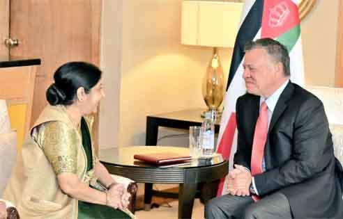 نئی دہلی۔۔۔ ۔ہندوستان اور اردن نے دہشتگردی کیخلاف جنگ ، سائبرسیکیورٹی ، ٹریننگ، دفاعی پیداوار ، دفاعی شعبے میں وسیع تعاون سمیت 12معاہدوں پر دستخط کئے۔اس موقع پر وزیر خارجہ سشما سوراج ، قومی سلامتی کے مشیر اجیت دویل اور خارجہ سیکریٹری وجے گوکھلے موجو د تھے۔ ہندوستان نے اردن میں شام اور فلسطین کے پناہ گزینوں کی رسد و خوراک کیلئے اردن کو 50لاکھ ڈالر کی امداد کا اعلان کیا۔وزیر خارجہ کے سیکریٹری ایس تری مورتی نے صحافیوں کو بتایا کہ ہندوستان نے گزشتہ سال اردن کو 20لاکھ ڈالر کی امداد دی تھی ۔ وزیر اعظم نریندر مودی اور اردن کے شاہ عبداللہ ثانی کے مابین میٹنگ میں اردن کو 50لاکھ ڈالر دینے کا فیصلہ کیا گیا۔