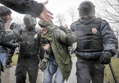 ماسکو۔۔۔ روس میں حکومت مخالف مظاہروں نے شدت اختیار کرلی۔ اپوزیشن رہنما الیکسی ناوالئی سمیت ایک ہزار افراد کو گرفتار کرلیا گیا۔ ناوالئی کو مارچ میں ہونے والے انتخابات میں حصہ لینے سے روک دیا گیا تھا۔ پوٹین آئندہ ہفتے حلف اٹھا رہے ہیں جس کے خلاف اپوزیشن نے مظاہروں کی کال دے رکھی ہے۔