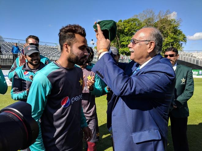 ڈبلن:آئر لینڈ میں میزبان ٹیم کی تاریخ کا پہلے ٹیسٹ کیلئے پاکستان کے 2کھلاڑیوں جبکہ آئر لینڈ کی پوری ٹیم کو ٹیسٹ کیپس پہنائی گئیں۔ ڈبلن کے مالاہائیڈ گراﺅنڈ میں پاکستان کرکٹ بورڈ کے چیئرمین نجم سیٹھی نے اوپنر امام الحق اور آل راﺅنڈر فہیم اشرف کو ٹیسٹ کیپ دی۔ دونوں نوجوان کھلاڑی پاکستان کی جانب سے اپنا پہلا ٹیسٹ کھیل رہے ہیں۔ آئرلینڈ کی پوری ٹیم اپنا پہلا ٹیسٹ کھیل رہی ہے یوں اس کے تمام کھلاڑیوں کو ٹیسٹ کیپس دی گئیں۔ آئرش ٹیم میں ایڈ جوائس اور بوائڈ ایسے کھلاڑی ہیں جو 2ممالک کی جانب سے ٹیسٹ کرکٹ کھیلنے اعزاز حاصل کرنے میں کامیاب ہو گئے ۔ دونوں انگلینڈ اور آسٹریلیا کی جانب سے بھی ٹیسٹ کھیل چکے ہیں۔