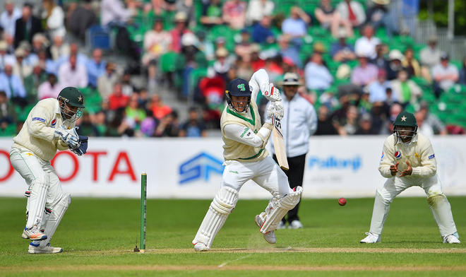 ڈ بلن:محمد عباس، شاداب خان اور محمد عامر کی عمدہ اور تباہ کن بولنگ کی بدولت پاکستان نے تاریخ کا پہلا ٹیسٹ کھیلنے والی آئرلینڈ کی ٹیم کو 130 رنز پرروک لگا کر فالو آن پر مجبور کرکے جیت کی ڈگر پر چلنے کا بندوبست کرلیا۔ آئر لینڈ کے اوپنرز نے دوسری اننگز میں 64 رنز بنالئے تاہم پہلی اننگز کا خسارا پورا کرنے کیلئے مزید 116رنز کی ضرورت ہے ۔ وپنرز ایڈ جوائس 39 اور ولیم پورٹر فیلڈ 23 رنز کے ساتھ ناٹ آوٹ ہیں۔ تاریخی ٹیسٹ میچ کے تیسرے دن پاکستان نے /6 268 رنز کی نامکمل اننگز دوبارہ شروع کی تو 52 رنز پر ناٹ آوٹ شاداب خان صرف 3 رنز کا اضافہ کر کے 55 پر پویلین لوٹ گئے۔ ٹیسٹ ڈیبو کرنے والے فہیم اشرف نے ٹیم کا اسکور 300 تک پہنچانے میں اہم کردار ادا کیا۔ بدقسمتی سے وہ اپنے پہلے ٹیسٹ میں سنچری بنانے سے محروم رہے اور 83 رنز بنا کر آوٹ ہوئے۔ پاکستان نے اپنی پہلی اننگز 310 رنز 9 کھلاڑی آوٹ پر ڈیکلیئر کردی ۔ آئرلینڈ کی ٹیسٹ کرکٹ کی تاریخ میں پہلی اننگز کسی ڈراونے خواب سے کم نہ تھی ۔ 7 رنز پر اس کے 4 کھلاڑی پویلین لوٹ چکے تھے۔اس تباہی میں محمد عباس پیش پیش تھے جنہوں نے ایڈ جوائس، اینڈی بلبرنی اور نیل اوبرائن کو وکٹ پر رکنے نہ دیا ۔ کپتان ولیم پورٹرفیلڈ کی وکٹ محمد عامر نے اڑا دی ۔ مڈل آرڈر کیون اوبرائن اور پال اسٹرلنگ نے وکٹیں گرنے کا سلسلہ کچھ دیر کے لیے روک کر 29 رنز کی شراکت قائم کی لیکن فہیم اشرف نے ٹیسٹ کرکٹ میں اپنے پہلے اوور کی تیسری گیند پر 17 رنز بنانے والے اسٹرلنگ کی اننگز کا خاتمہ کردیا۔کپتان سرفراز احمد نے جلد ہی شاداب خان کو گیند دی جنہوں نے کپتان کے اعتماد پر پورا اترتے ہوئے دوسرے ہی اوور میں یکے بعد دیگرے اسٹورٹ تھامسن اور ٹاون کین کو آوٹ کر کے آئرلینڈ کے لئے فالو آن کا خطرہ پیدا کردیا۔ آئرلینڈ کو بڑا دھچکا اس وقت لگا جب محمد عامر نے کیون اوبرائن کو آوٹ کردیا جو اچھی فارم میں نظر آ رہے تھے لیکن ان کی اننگز بھی 40 رنز تک محدود رہی۔ 73 رنز پر 8 وکٹیں گرنے کے بعد آئرلینڈ کی سنچری بھی مکمل ہوتی نظر نہیں آ رہی تھی لیکن ٹیل اینڈرز پاکستانی بولرز کے سامنے ڈٹ گئے۔ گیری ولسن نے بوائڈ رینکن کے ساتھ مل کر ٹیم کی سنچری مکمل کرائی ۔ اس موقع پر محمد عباس نے رینکن کو آوٹ کر کے اس مزاحمت کا بھی خاتمہ کردیا۔ پاکستان کو آخری وکٹ کے حصول کے لئے کچھ انتظار کرنا پڑا ۔ ولسن نے ٹم مرتاغ کے ساتھ مزید 23 رنز بنا کر اسکور 130 تک پہنچا دیا اور اسی اسکور پر شاداب خان نے مرتاغ کو آوٹ کر کے آئرش ٹیم کی تاریخی اننگز کو فالو آن کر دیا۔ ولسن 33 رنز پر ناٹ آوٹ رہے ۔ پاکستان کی جانب سے محمد عباس 4 وکٹیں لے کر سب سے کامیاب بولر رہے جبکہ شاداب خان نے 3 اور عامر نے 2 وکٹیں لیں۔ ایک وکٹ فہیم اشرف نے حاصل کی۔