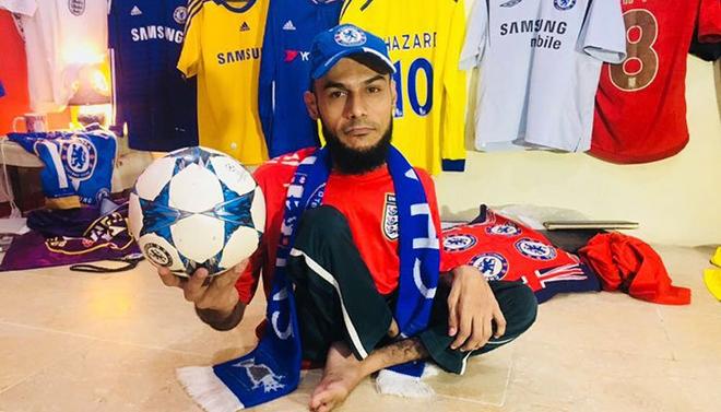 کراچی: دنیابھر کے کروڑوں شائقین ان دنوں فیفا ورلڈ کپ کے بخار میں مبتلا ہیں۔ ان میں سے ایک پاکستانی محمد شعیب بھی ہیں۔کراچی کے رہائشی محمد شعیب بچپن میں پولیو کا شکار ہوگئے تھے اورمعذوری کے باعث وہ خود فٹبال نہیں کھیل سکتے لیکن اس کھیل سے محبت کرتے ہیں۔ اپنے پسندیدہ فٹبالرز کو کھیلتے ہوئے دیکھنا ان کا سب سے بڑا شوق ہے۔ محمد شعیب نے بتایا کہ مجھے انگلینڈ کی ٹیم پسند ہے اور میں ورلڈ کپ میں اسے سپورٹ کر رہا ہوں، مجھے یقین ہے کہ اس مرتبہ انگلینڈ فائنل جیتے گا۔ شعیب انگلش پریمیئر لیگ کلب چیلسی کے بھی مداح ہیں اور ان کے پاس اس ٹیم کی شرٹ اور دیگر اشیاءموجود ہیں۔وہ چیلسی کا میچ اس کے ہوم اسٹیڈیم میں دیکھنا چاہتے ہیں،ان کاکہنا ہے کہ یہ میری زندگی کا سب سے بڑا خواب ہے۔
