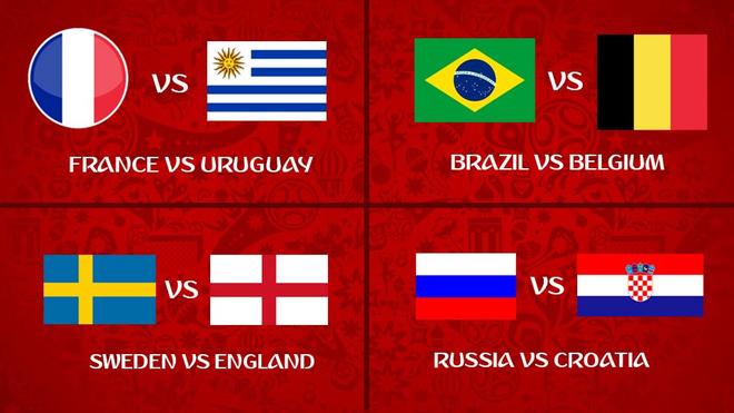 یوراگوئے،فرانس،برازیل،بیلجیئم کوارٹر فائنلز میں ٹکرائیں گے