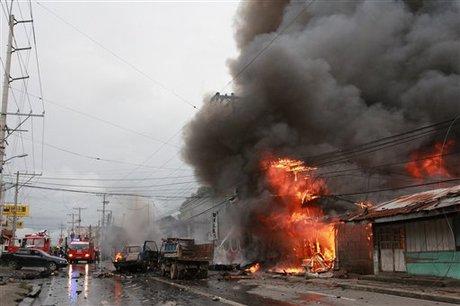 منیلا ۔۔۔ فلپائن کے جزیرے بیسلن میں ایک فوجی چوکی پر منگل کی صبح ایک وین کے اندر ہونے والے دھماکے میں کم از کم 10 افراد ہلاک ہو گئے۔عالمی ذرائع ابلاغ کے مطابق علاقے کے اسکاؤٹ رینجر یونٹ کے کمانڈر لیفٹیننٹ کرنل مون المودووار نے بتایا کہ فوجی چوکی پر سکیورٹی فورسز نے وین روک کر اس کے ڈرائیور سے بات چیت کی تھی اور اس کے کچھ ہی لمحے بعد اس میں دھماکہ ہوا. اب تک یہ پتہ نہیں چل سکا ہے کہ حملے میں کسے نشانہ بنایا گیا تھا لیکن یہ طے ہے کہ دھماکے مقررہ وقت سے پہلے ہو گیا۔ دھماکے میں ایک فوجی، 5جنگجو اور ایک خاتون اور اس کا بچے سمیت 4 شہری ہلاک ہوگئے۔