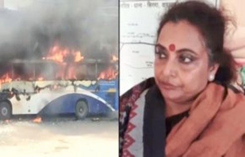 یوپی: پروانچل ریاست کا مطالبہ کرنیوالی خاتون نے بس نذرآتش کردی