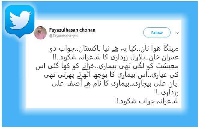 فیاض الحسن چوہان نے ٹویٹ کیا :
