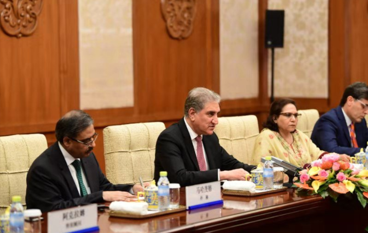 وزیرخارجہ شاہ محمود قریشی کی چینِی ہم منصب وانگ ژی سے ڈھائی گھنٹے تک ملاقات جاری رہی (فوٹو:ٹوئٹر)