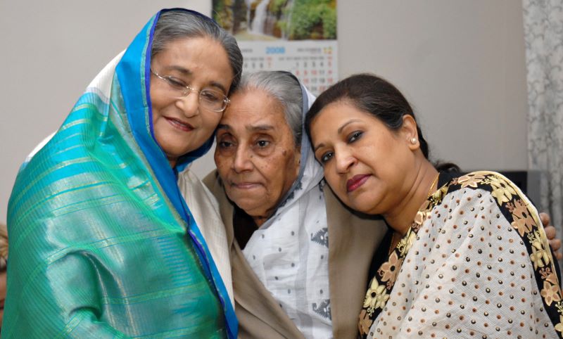 شیخ مجیب الرحمن کی دو بٹیاں حسینہ واجد اور شیخ ریحانہ جرمنی میں ہونے کی وجہ سے اس حملے سے محفوظ رہیں۔ فوٹو اے ایف پی