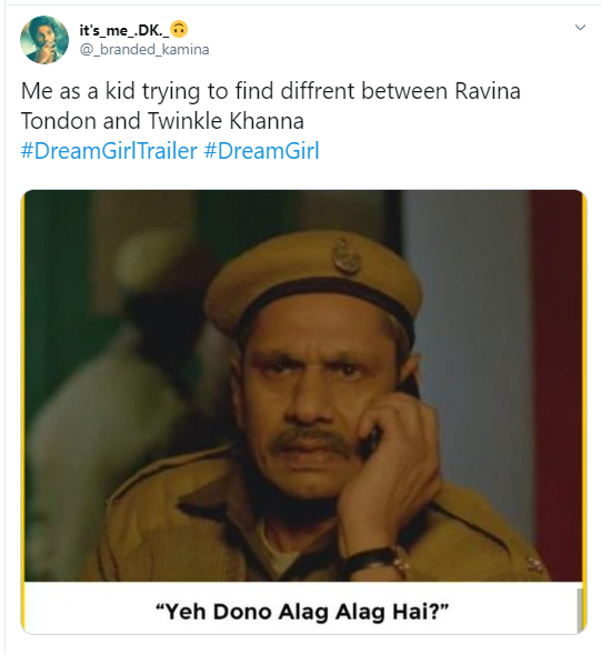 ’اٹس می ڈی کے‘ نامی ٹوئٹر ہینڈل نے اپنے بچپن کی یادیں تازہ کرتے ہوئے تحریر کیا کہ ’میں بچپن میں روینا ٹنڈن اور ٹوئنکل کھنہ کے درمیان فرق تلاش کرتا رہا۔‘