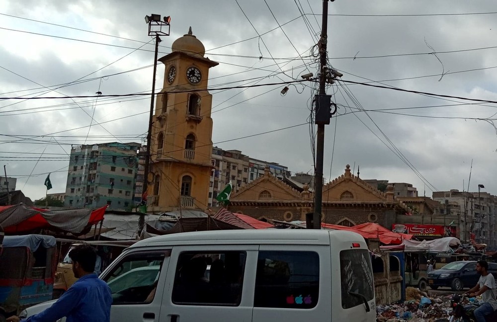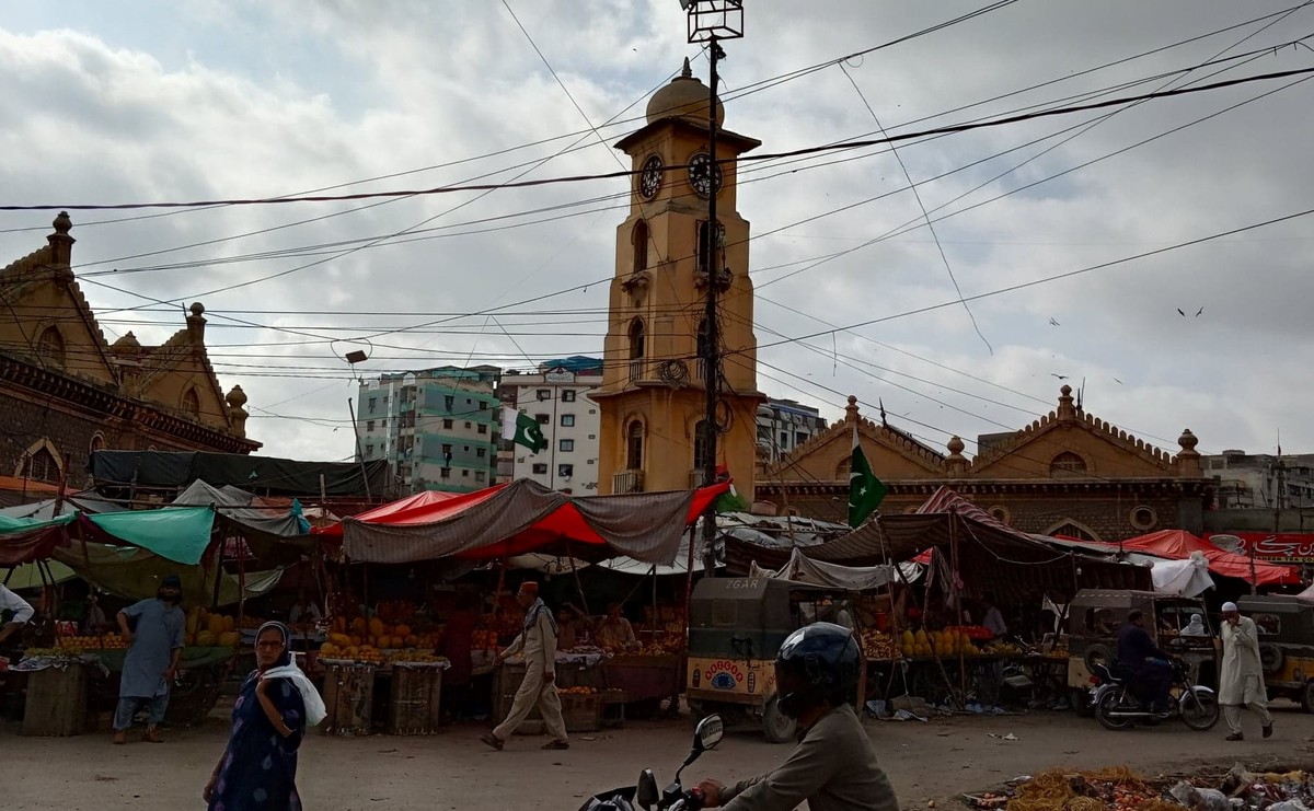 لی مارکیٹ کراچی کی اہم ترین مارکیٹوں میں شمار ہوتی ہے۔ یہ مارکیٹ اس شہر کی سب سے پرانی مارکیٹ بھی ہے۔ جہاں نصب ٹاور کلاک کی عمارت اب تجاوزات کی وجہ سے کم ہی دکھائی دیتی ہے، اس کا اصل چہرا جیسے ریڑھوں، رکشوں اور سبزی بچنے والوں کی وجہ سے ڈھکا ہوا ہے۔ میں جب اس جگہ پہنچا تو مجھے ٹاور کلاک ہی نمایاں طور نظر آیا مگر باقی عمارت کے خدو خال مشکل سے ہی دکھائی دیتے ہیں۔