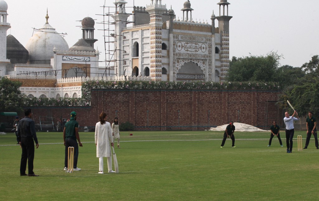 شہزادہ ولیم اور کیٹ میڈلٹن نے لاہور میں کرکٹ بھی کھیلی، فوٹو: اے ایف پی