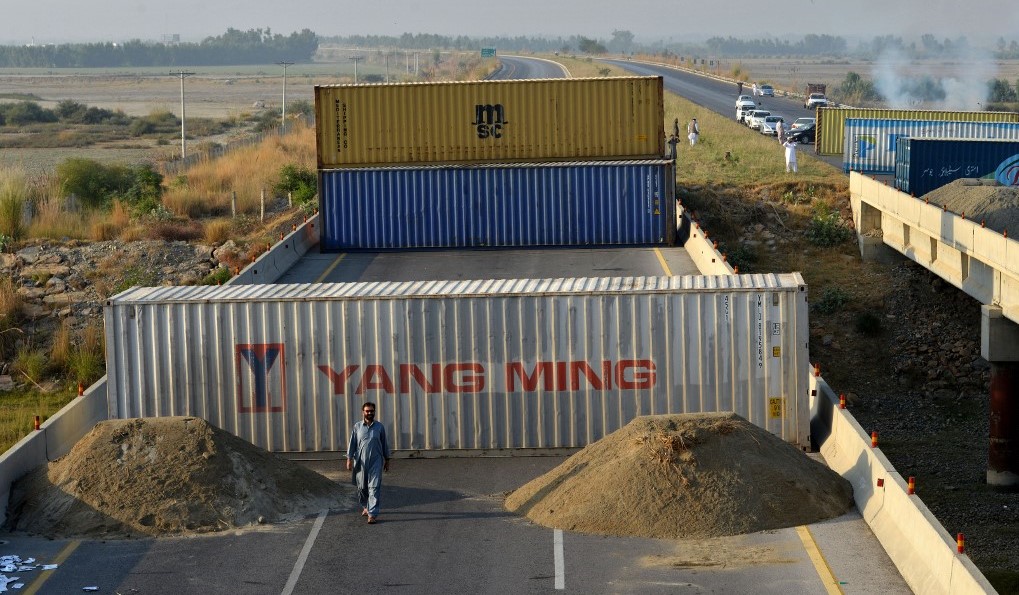 کنٹینروں کو اسلام آباد طلب کر لیا گیا ہے اور ان کی چھٹیاں منسوخ کر دی گئی ہیں، فوٹو: اے ایف پی