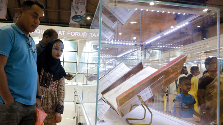 کتب میلے میں کئی قدیم نسخے ہزاروں سال پرانے ہیں۔ فوٹو الامارات الیوم