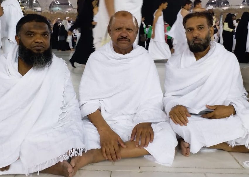 محمد حفیظ اپنے دوستوں کے ہمراہ عمرے کی ادائیگی کے دوران