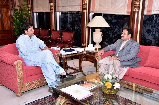 عمران خان کے بقول ’عثمان بزدار پنجاب میں اچھے اقدامات کر رہے ہیں لیکن وہ اپنے کاموں کی تشہیر نہیں کرتے‘ (فوٹو: اے ایف پی)
