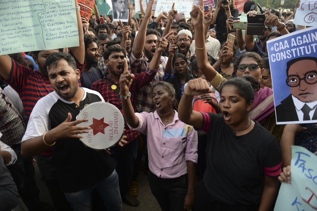 آئی آئی ٹی کی فیکلٹی کے رکن نے الزام عائد کیا ہے کہ طلبا نے مظاہرے کے دوران انڈیا مخالف اور فرقہ وارانہ نعرے بھی لگائے (فوٹو:اے ایف پی)