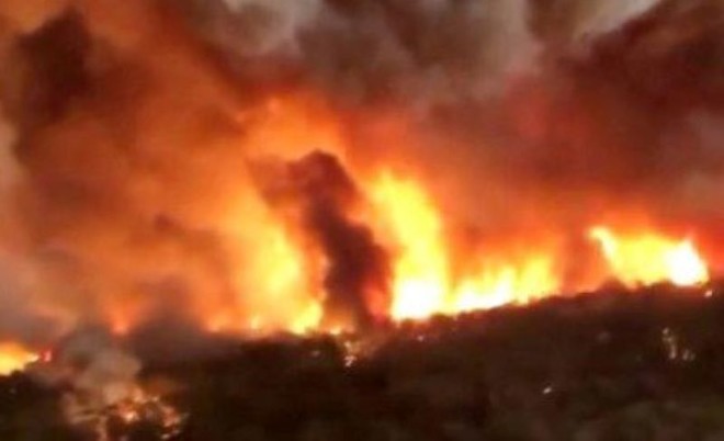 زمان ترین کے مطابق آگ کے شعلے اتنے بلند ہیں کہ 10 کلومیٹر دور سے بھی نظر آرہے ہیں۔