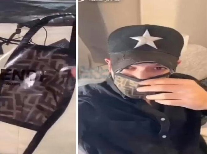 ویڈیو کلپ میں دیکھا جاسکتا ہے المرزوق نے انٹرنیشنل ٹریڈ مارک کا ماسک ’فندی‘ 300 ڈالر میں خریدا ہے۔