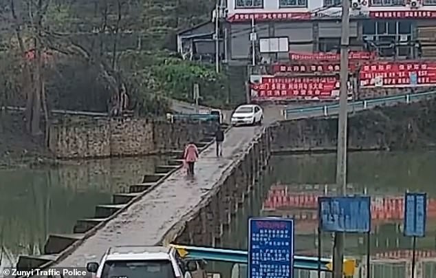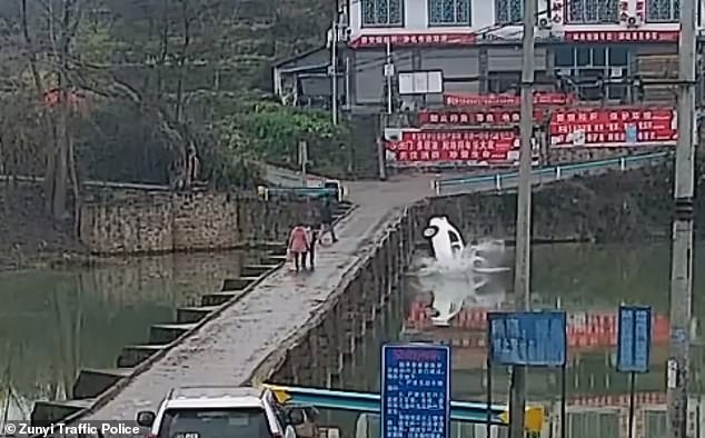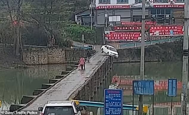 چینی شہر زونی کی ٹریفک پولیس نے سوشل میڈیا پر اس واقعے کی سی سی ٹی وی فوٹیج اور تصاویر پوسٹ کی ہیں جن میں کار کو دریا میں گرتے ہوئے دیکھا جا سکتا ہے۔