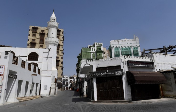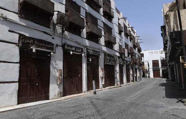 جدہ بلد بازار کی گلیاں سنسنان پڑی ہیں۔۔اشیائے خورونوش لے جانے والے ٹرک اور گاڑیاں کرفیوسے مستثنی ہیں