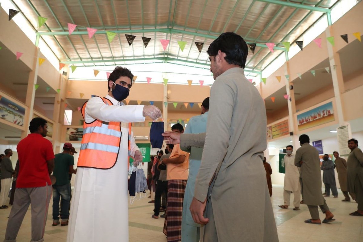 گورنر الجوف کی ہدایات پرعمل کرتے ہوئے غیر ملکی کارکنوں میں ماسکس تقسیم کیے گئے (فوٹو: واس)