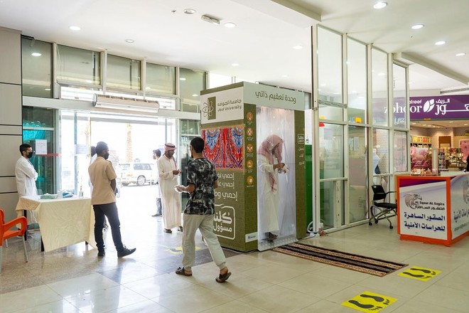 گورنر الجوف ریجن کی جانب سے شروع کی جانے والی احتیاطی مہم کے حوالے سے الجوف یونیورسٹی کی جانب سے مارکیٹوں میں خریداری کے لیے آنے والوں کی حفاظت کےلیے سینیٹائزر واک تھرو گیٹس بھی متعارف کروائے گئے ہیں جن کی تنصیب مختلف مارکیٹس کے صدر دروازے پر کی گئی ہے۔