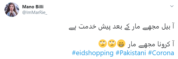 سوشل میڈیا صارفین کی جانب سے عید سے قبل بننے والی اس صورتحال پر گفتگو شروع ہوئی تو ایک ٹرینڈ کی شکل اختیار کر گئی۔ اس کا حصہ بننے والے صارفین نے کہیں عید شاپنگ سے متعلق اپنے منصوبوں کا ذکر کیا تو کسی کو بے تحاشا رش پر تشویش ہوئی، کوئی کورونا وائرس سے بچاؤ کے لیے تجویز کردہ احتیاطی تدابیر نظرانداز ہونے پر پریشان رہا تو کسی نے متبادل آئیڈیاز کے ذریعے صورتحال سنبھالنے کی سعی کی۔