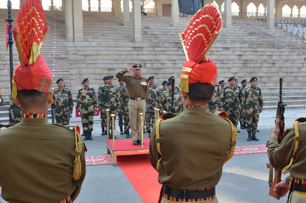 اس موقع پر دونوں ملکوں کے بارڈر گارڈز مارچ پاسٹ کرتے ہیں اور اپنی ٹانگیں فضا میں بلند کر کے اپنی فٹنس کا مظاہرہ کرتے ہیں۔ اس موقع پر دونوں طرف کے شائقین نعرے لگا کر انہیں داد دیتے اور حوصلہ افزائی کرتے ہیں۔