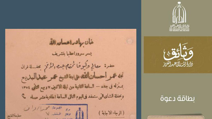 سعودی عرب میں کنگ عبدالعزیز اکیڈمی نے اپنے ٹوئٹر اکاؤنٹ پر اب سے 85 برس قبل 1935 میں جدہ شہر میں ہونے والی شادی کے کارڈ کی فوٹو کاپی جاری کی ہے۔ سوشل میڈیا پر اس کے چرچے ہیں۔