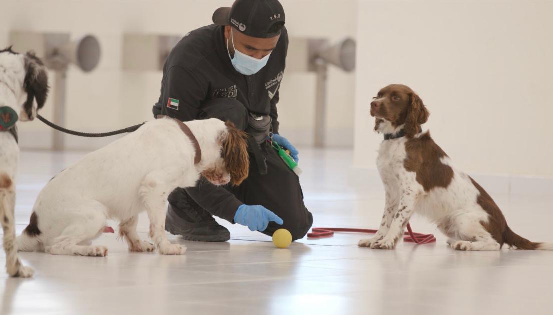 اماراتی وزارت داخلہ نے بتایا کہ مختلف مقامات پر موجود لوگوں کی بغل سے سیمپل لے کر جاسوس کتے کے سامنے رکھ دیا جاتا ہے۔